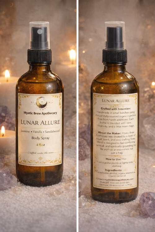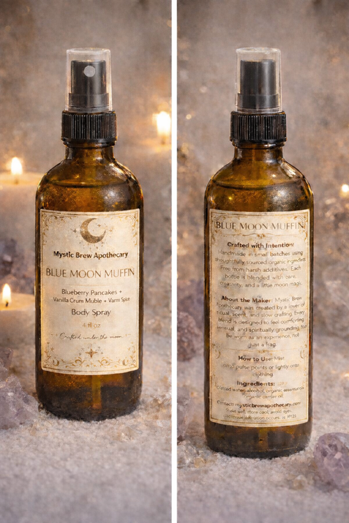 LEARN ABOUT THE MAKER: Mystic Brew Apothecary, every creation begins with intention and a touch of magic. I am Sarah, a lover of nature, herbs, and the subtle energies that surround us. Each body spray, lotion, and elixir is handcrafted with care, blending botanicals, essential oils, and natural ingredients to nurture both body and spirit. My passion lies in creating products that are not just beautiful, but transformative—inviting moments of calm, confidence, and connection into your daily life. Every jar, bottle, and blend is more than a product—it’s an experience for the senses and the soul.